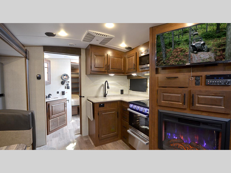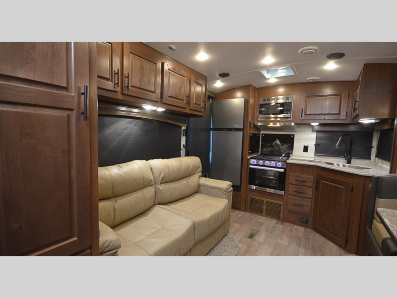 Sleeps 4 Slides 2 Length 31 ft 2 in Ext Width 8 ft Ext Height 11 ft 7 in Int Height 6 ft 11 in Interior Color Sandstone, Stone Basin Hitch Weight 780 lbs GVWR 11000 lbs Dry Weight 7980 lbs Cargo Capacity 3500 lbs Fresh Water Capacity 80 gals Grey Water Capacity 80 gals Black Water Capacity 50 gals Tire Size ST235/80/16E Furnace BTU 35000 btu Available Beds Queen Refrigerator Type 12V Off Grid Refrigerator Size 10 cu ft Cooktop Burners 3 Number of Awnings 1 Axle Weight 5200 lbs LP Tank Capacity 30 lbs Water Heater Capacity 10 gal AC BTU 15000 btu TV Info LR 40", BR TV Awning Info 21' Axle Count 2 Number of LP Tanks 2 Shower Type Neo-Angled Similar Floorplans
