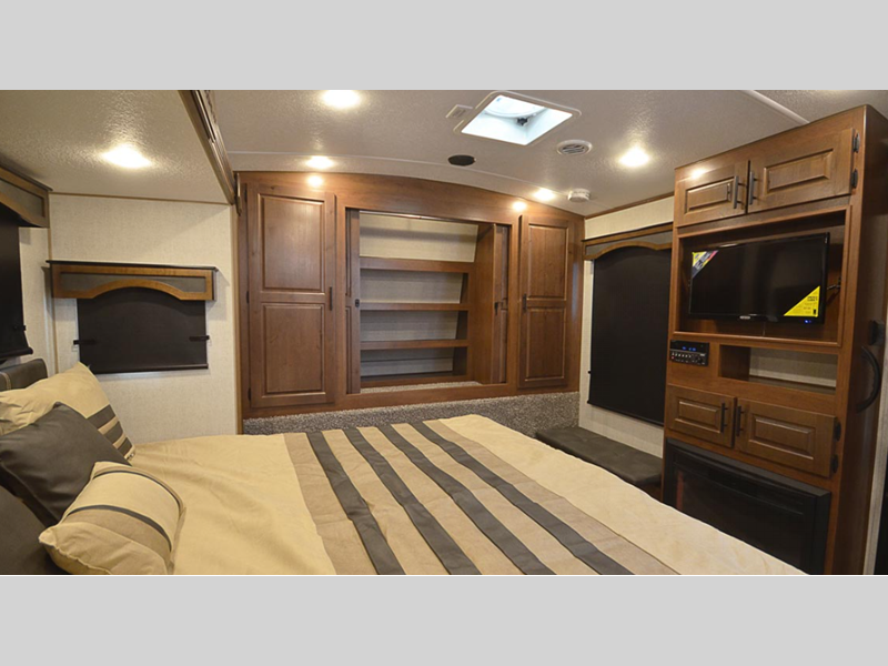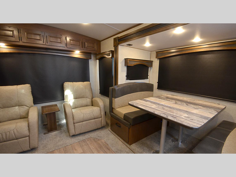 Sleeps 5 Slides 2 Length 34 ft 11 in Ext Width 8 ft Ext Height 11 ft 6 in Int Height 6 ft 11 in Interior Color Sandstone, Stone Basin Hitch Weight 805 lbs GVWR 11000 lbs Dry Weight 8690 lbs Cargo Capacity 2790 lbs Fresh Water Capacity 80 gals Grey Water Capacity 80 gals Black Water Capacity 50 gals Tire Size ST235/80/16E Furnace BTU 35000 btu Available Beds Queen Refrigerator Type 12V Off Grid Refrigerator Size 10 cu ft Cooktop Burners 3 Number of Awnings 1 Axle Weight 5200 lbs LP Tank Capacity 30 lbs Water Heater Capacity 10 gal AC BTU 15000 btu TV Info LR 40", BR TV Awning Info 21' Axle Count 2 Number of LP Tanks 2 Shower Type Neo-Angled Similar Floorplans
