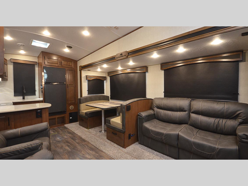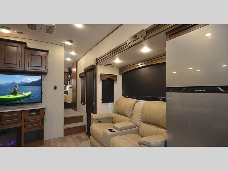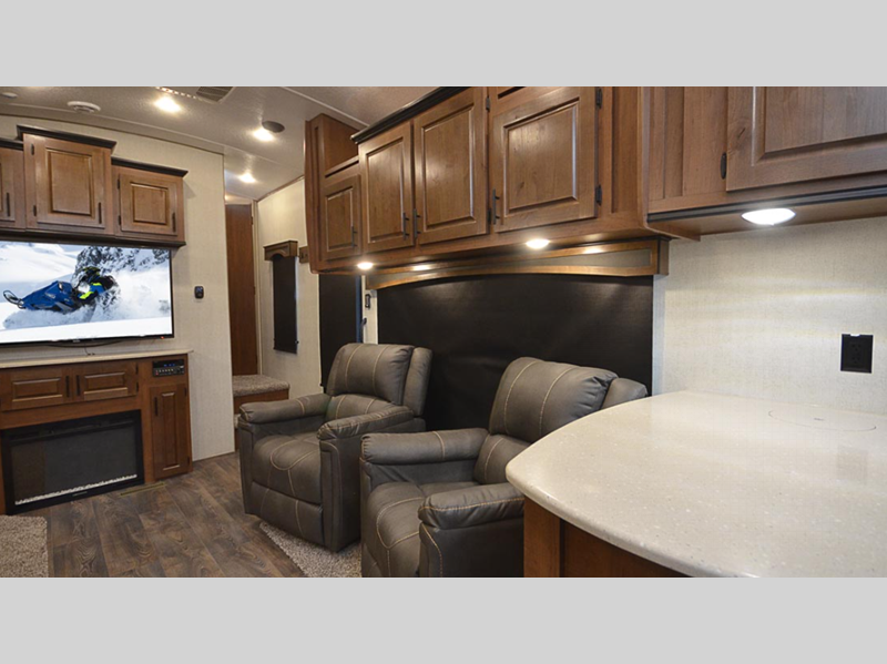 Outdoors RV Glacier Peak Titanium Series fifth wheel F28RKS highlights: Lounge ... more about Glacier Peak Titanium Series F28RKS