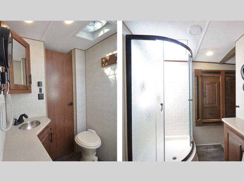 Sleeps 5 Slides 2 Length 34 ft 8 in Ext Width 8 ft Ext Height 13 ft Int Height 8 ft 3 in Interior Color Sandstone, Silver Basin Hitch Weight 2475 lbs GVWR 12995 lbs Dry Weight 10575 lbs Cargo Capacity 2695 lbs Fresh Water Capacity 80 gals Grey Water Capacity 80 gals Black Water Capacity 50 gals Tire Size ST235/8016E Furnace BTU 35000 btu Available Beds Queen Refrigerator Type 12V Off Grid Refrigerator Size 10 cu ft Cooktop Burners 3 Number of Awnings 1 Axle Weight 6000 lbs LP Tank Capacity 30 lbs Water Heater Capacity 10 gal AC BTU 15000 btu TV Info LR Swing Out 50" Awning Info 20' Axle Count 2 Number of LP Tanks 2 Shower Type Radius Electrical Service 50 amp Similar Floorplans